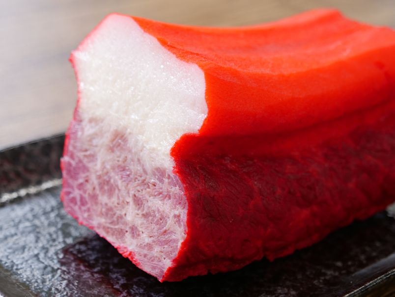 畝須とは鯨の下顎から腹部にかけての縞状の部分。その中でも脂身と赤身のバランスが良い畝須一級の部位が、おいしい鯨ベーコンの原料として最適です。