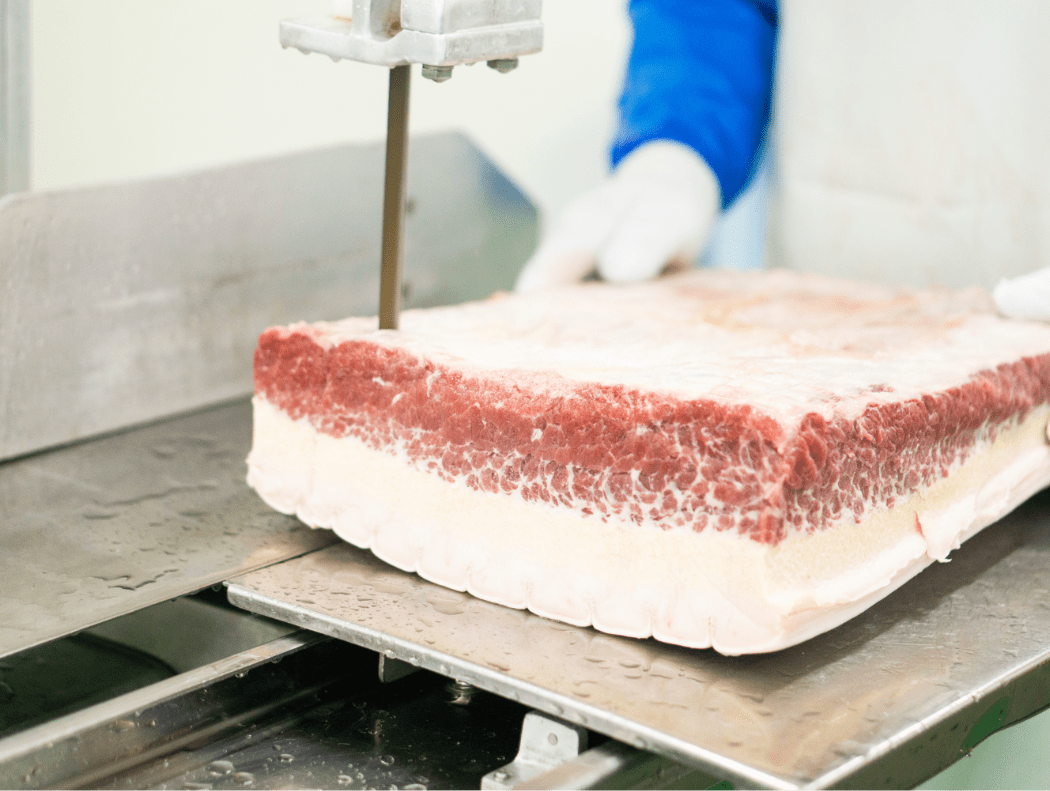 仕入れた鯨肉は、カットするところから調味味付け、成形、パッキングまで徹底した衛生管理体制のもとで対応し、製品として出荷しています。